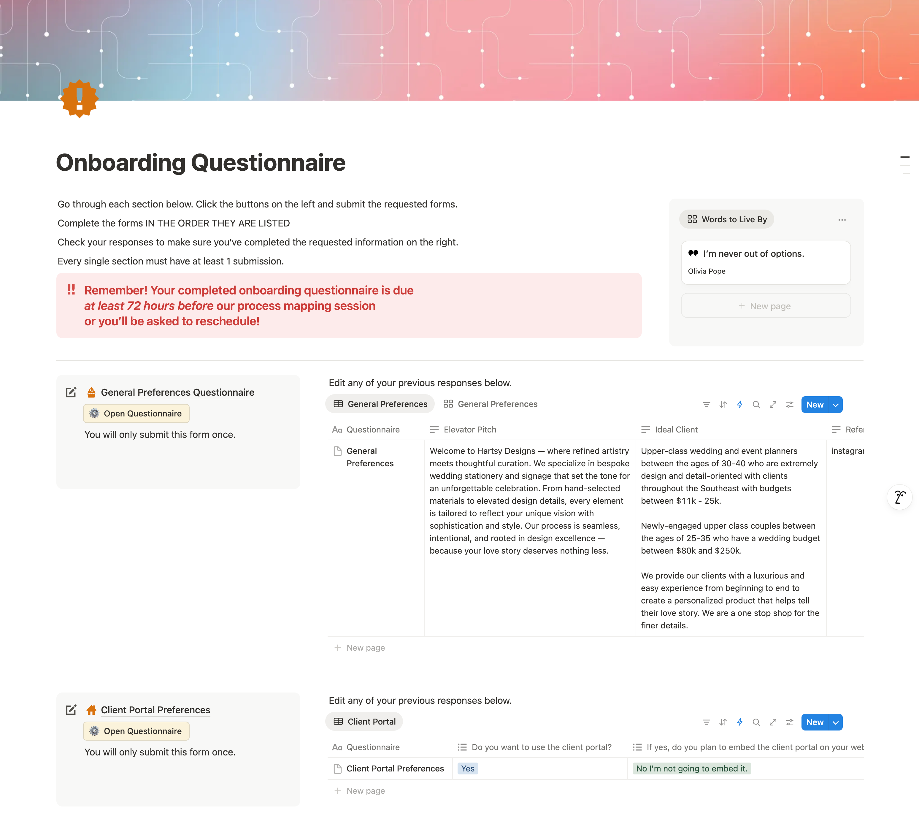 Moving your Onboarding Questionnaire into Notion is what makes the whole Setup OS system actually work the way it’s meant to.