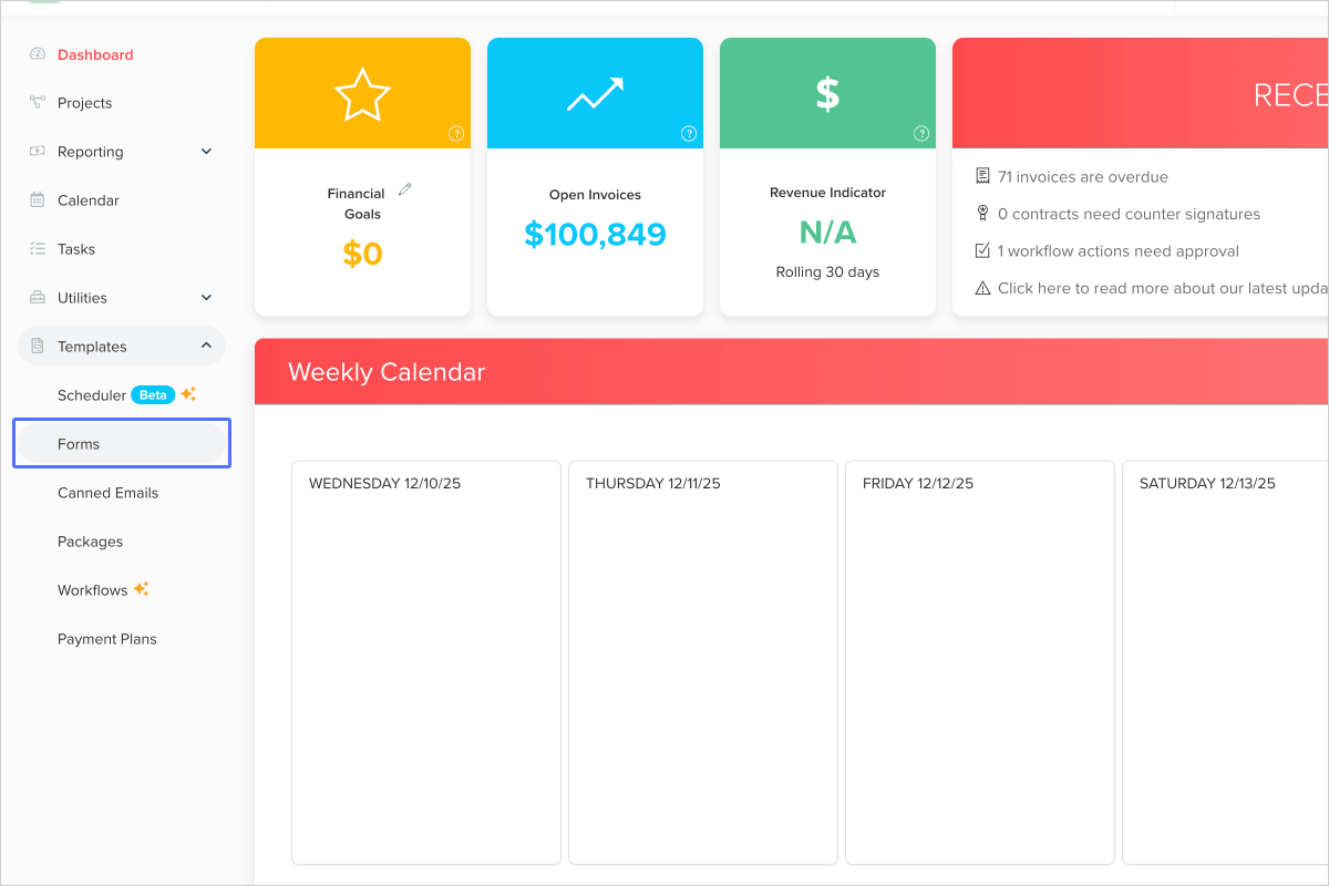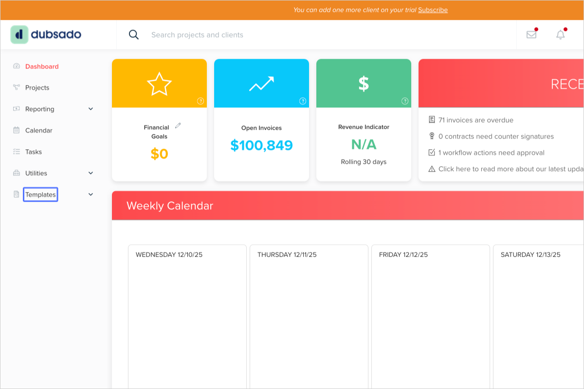 - Start at https://hello.dubsado.com/dashboard